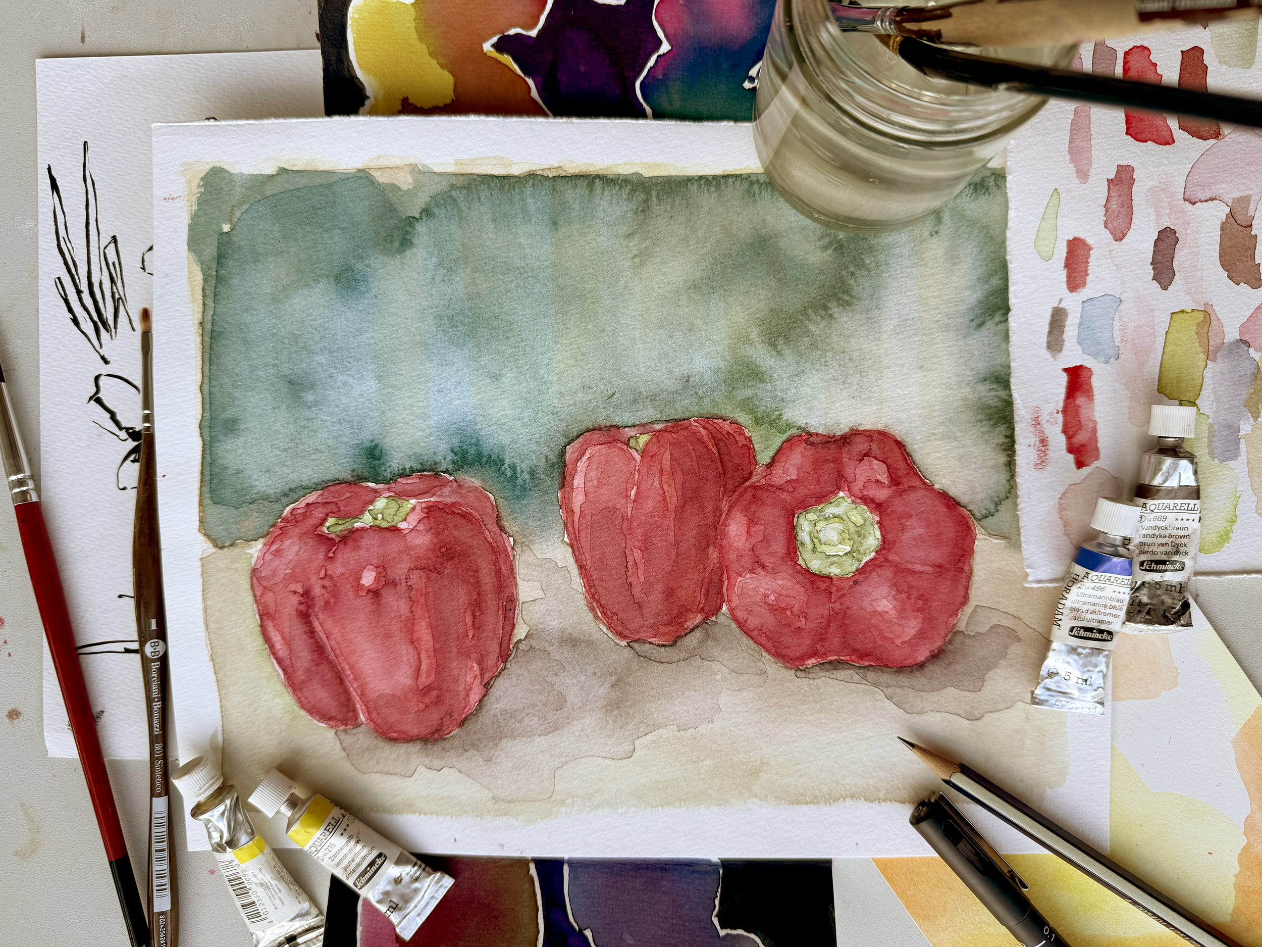 In the intermediate course we will build upon skills in watercolour mixing and painting techniques, with a focus on colour theory, composition, application and our developing artistic voices. Students have the choice to work with any subject matter throughout the course (for example, still life, landscape, abstraction) and will also be supported in developing a project or series of works of their own choosing, with all materials provided (though you are welcome to bring your own).